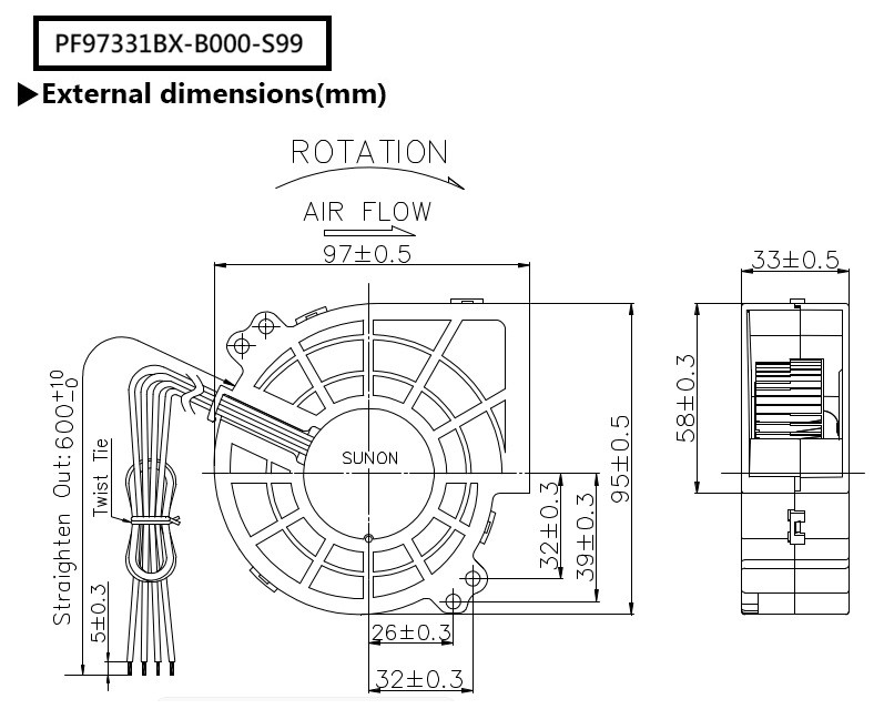 Rated Voltage:12 VDCRated Current:3500 mA / Max. 4025mARated Power Consumption:42.00 / Max.48.30 WATTSRated Speed:6800RPM ± 10%Acoustic Noise:Nominal 63.2 / Max. 69.9 dB(A)Air Flow:Nominal 54.7 / Min. 48.9 CFM